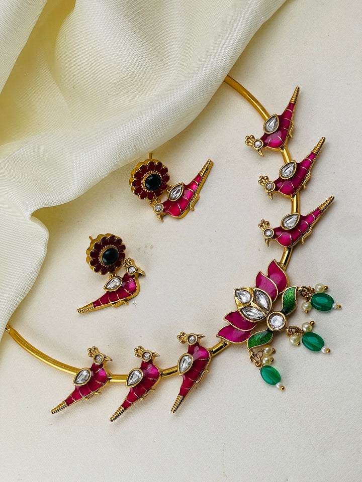 Rani Pink Parrot Design Statement Necklace