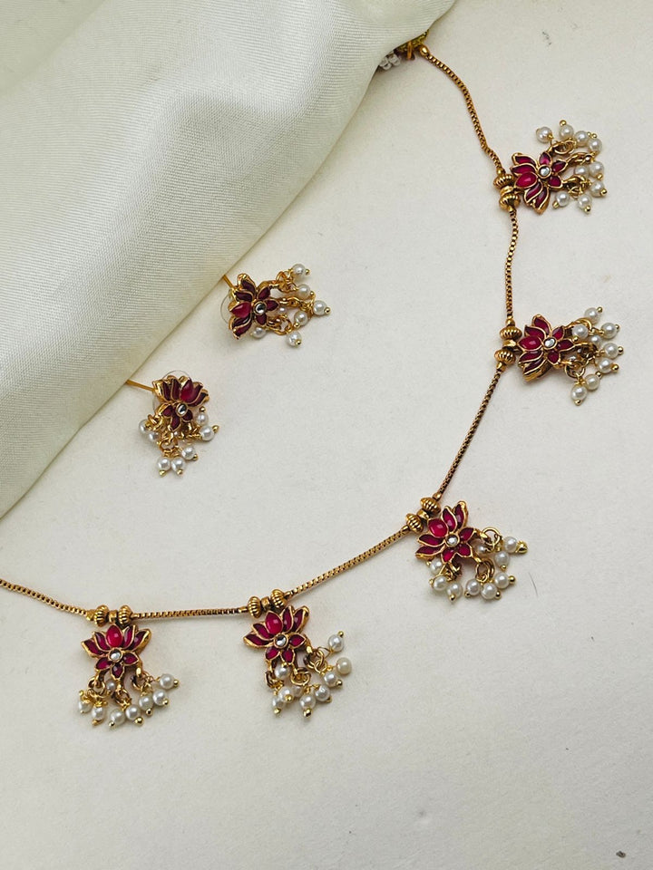 Ruby Lotus Kundan Necklace